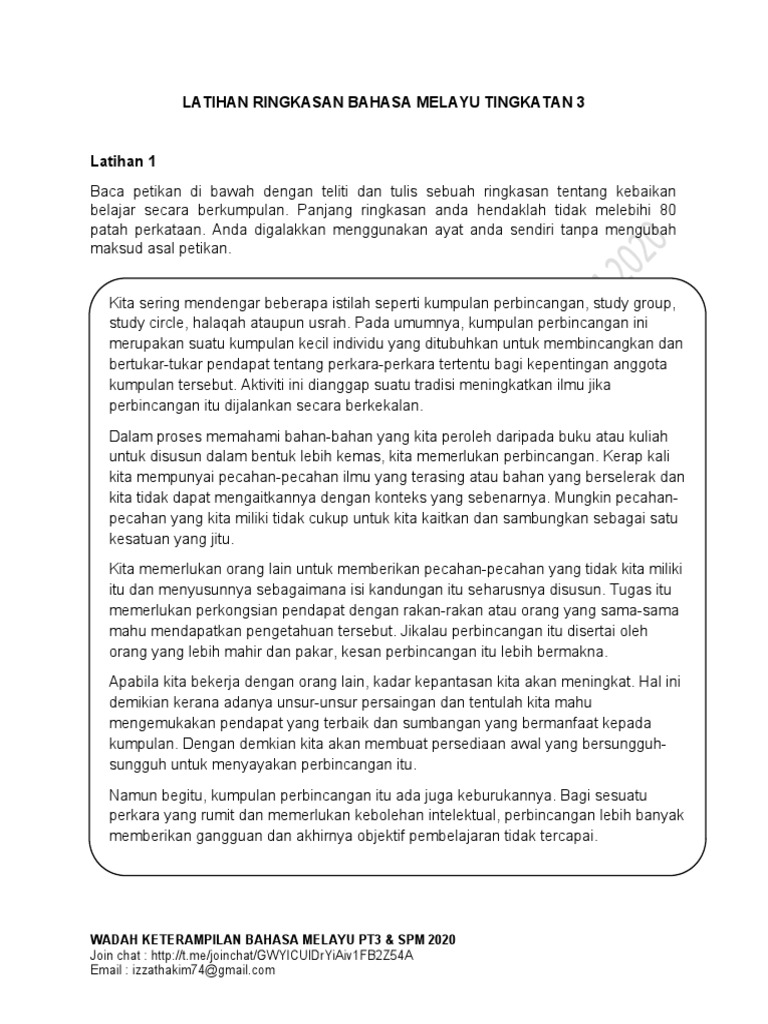 Latihan Ringkasan Bahasa Melayu Tingkatan 3 Pdf